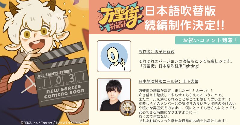 アニメ「万聖街」は、2020年4月から腾讯视频(テンセントビデオ)でシーズン1が独占配信されました。